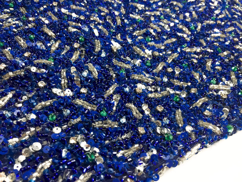 Océano Encaje de cuentas hecho a mano - Mezcla de azul real, verde y plata - MUESTRA